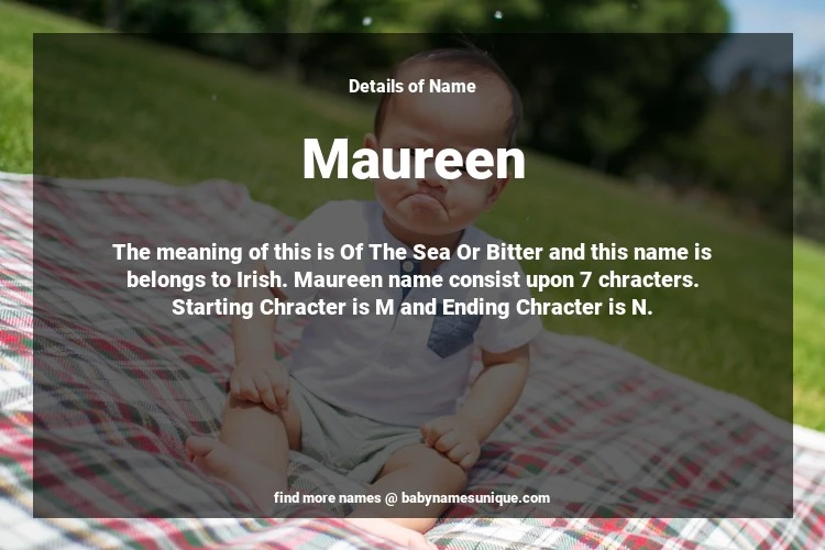 The name Maureen is chosen by those who are willing to find Unique Transgenders Baby Names. The meaning of this is Of The Sea Or Bitter and this name is belongs to Irish Origin. Baby Name Maureen consist upon 7 chracters. Starting alphabet is M and ending alphabet is N. This name is used primarily by parents who are considering unique baby names for Transgenders. The Zodiac Sign suitbale for this name are;