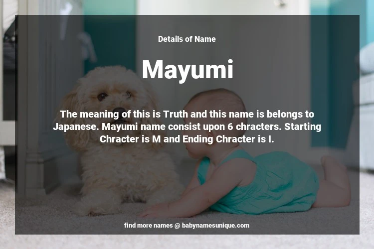 The name Mayumi is chosen by those who are willing to find Unique Transgenders Baby Names. The meaning of this is Truth and this name is belongs to Japanese Origin. Baby Name Mayumi consist upon 6 chracters. Starting alphabet is M and ending alphabet is I. This name is used primarily by parents who are considering unique baby names for Transgenders. The Zodiac Sign suitbale for this name are;
