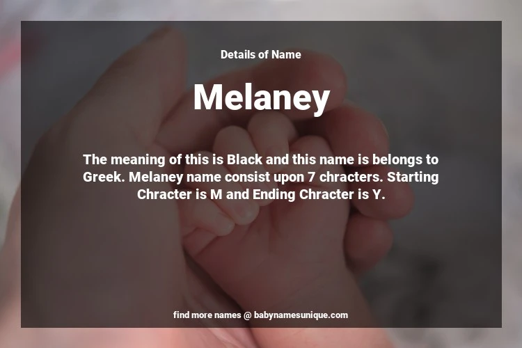 The name Melaney is chosen by those who are willing to find Unique Transgenders Baby Names. The meaning of this is Black and this name is belongs to Greek Origin. Baby Name Melaney consist upon 7 chracters. Starting alphabet is M and ending alphabet is Y. This name is used primarily by parents who are considering unique baby names for Transgenders. The Zodiac Sign suitbale for this name are;