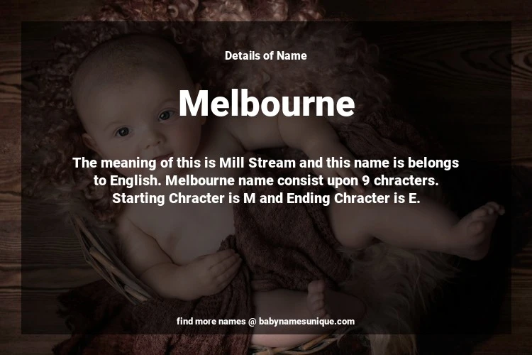 The name Melbourne is chosen by those who are willing to find Unique Transgenders Baby Names. The meaning of this is Mill Stream and this name is belongs to English Origin. Baby Name Melbourne consist upon 9 chracters. Starting alphabet is M and ending alphabet is E. This name is used primarily by parents who are considering unique baby names for Transgenders. The Zodiac Sign suitbale for this name are;
