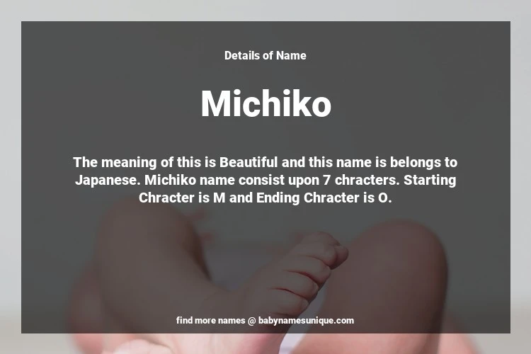 The name Michiko is chosen by those who are willing to find Unique Transgenders Baby Names. The meaning of this is Beautiful and this name is belongs to Japanese Origin. Baby Name Michiko consist upon 7 chracters. Starting alphabet is M and ending alphabet is O. This name is used primarily by parents who are considering unique baby names for Transgenders. The Zodiac Sign suitbale for this name are;