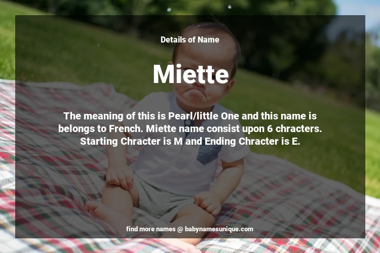 The name Miette is chosen by those who are willing to find Unique Transgenders Baby Names. The meaning of this is Pearl/little One and this name is belongs to French Origin. Baby Name Miette consist upon 6 chracters. Starting alphabet is M and ending alphabet is E. This name is used primarily by parents who are considering unique baby names for Transgenders. The Zodiac Sign suitbale for this name are;