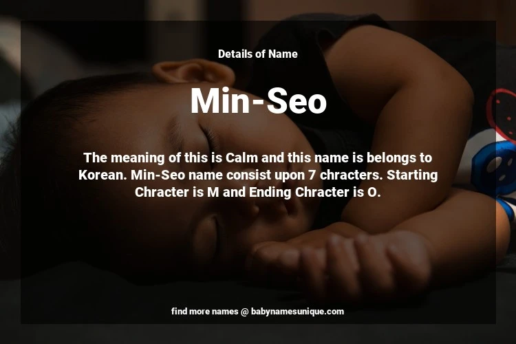 The name Min-Seo is chosen by those who are willing to find Unique Transgenders Baby Names. The meaning of this is Calm and this name is belongs to Korean Origin. Baby Name Min-Seo consist upon 7 chracters. Starting alphabet is M and ending alphabet is O. This name is used primarily by parents who are considering unique baby names for Transgenders. The Zodiac Sign suitbale for this name are;