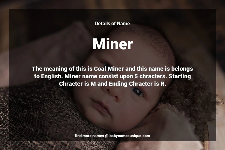 The name Miner is chosen by those who are willing to find Unique Transgenders Baby Names. The meaning of this is Coal Miner and this name is belongs to English Origin. Baby Name Miner consist upon 5 chracters. Starting alphabet is M and ending alphabet is R. This name is used primarily by parents who are considering unique baby names for Transgenders. The Zodiac Sign suitbale for this name are;