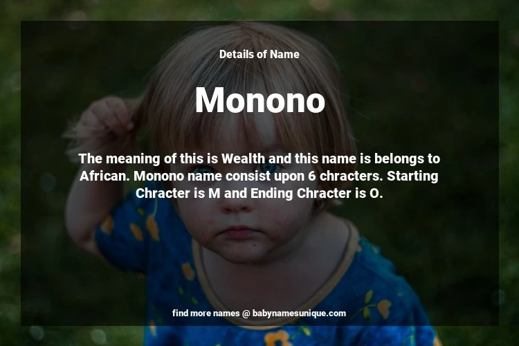 The name Monono is chosen by those who are willing to find Unique Transgenders Baby Names. The meaning of this is Wealth and this name is belongs to African Origin. Baby Name Monono consist upon 6 chracters. Starting alphabet is M and ending alphabet is O. This name is used primarily by parents who are considering unique baby names for Transgenders. The Zodiac Sign suitbale for this name are;