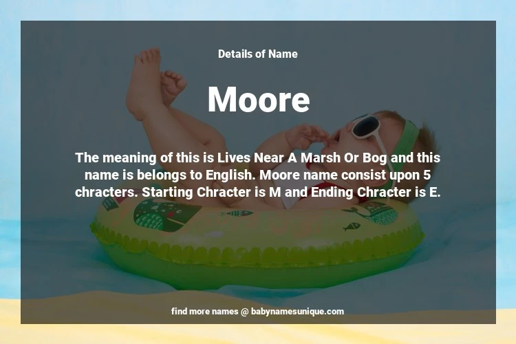 The name Moore is chosen by those who are willing to find Unique Transgenders Baby Names. The meaning of this is Lives Near A Marsh Or Bog and this name is belongs to English Origin. Baby Name Moore consist upon 5 chracters. Starting alphabet is M and ending alphabet is E. This name is used primarily by parents who are considering unique baby names for Transgenders. The Zodiac Sign suitbale for this name are;
