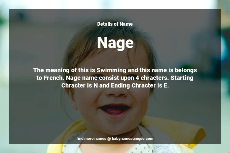 The name Nage is chosen by those who are willing to find Unique Transgenders Baby Names. The meaning of this is Swimming and this name is belongs to French Origin. Baby Name Nage consist upon 4 chracters. Starting alphabet is N and ending alphabet is E. This name is used primarily by parents who are considering unique baby names for Transgenders. The Zodiac Sign suitbale for this name are;