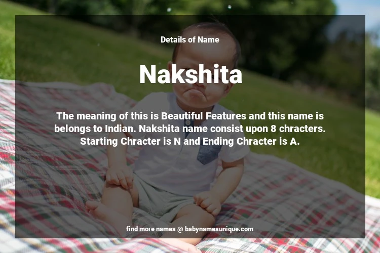 The name Nakshita is chosen by those who are willing to find Unique Transgenders Baby Names. The meaning of this is Beautiful Features and this name is belongs to Indian Origin. Baby Name Nakshita consist upon 8 chracters. Starting alphabet is N and ending alphabet is A. This name is used primarily by parents who are considering unique baby names for Transgenders. The Zodiac Sign suitbale for this name are;