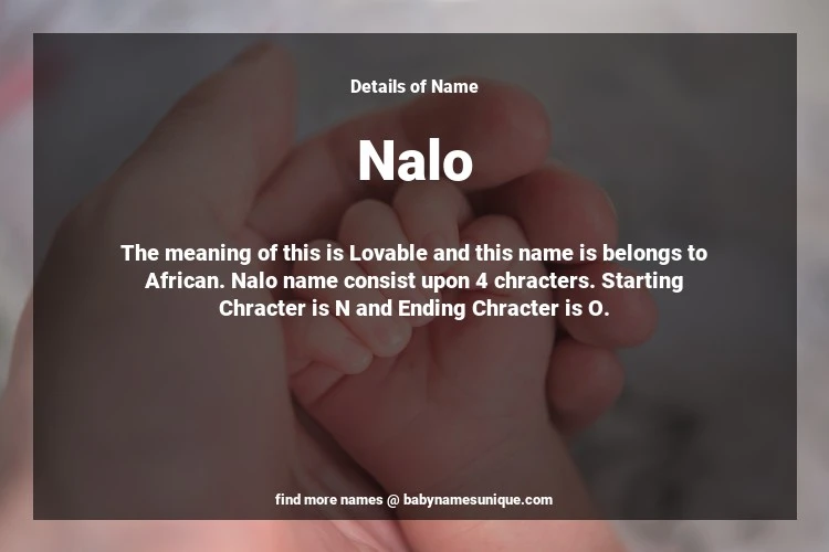 The name Nalo is chosen by those who are willing to find Unique Transgenders Baby Names. The meaning of this is Lovable and this name is belongs to African Origin. Baby Name Nalo consist upon 4 chracters. Starting alphabet is N and ending alphabet is O. This name is used primarily by parents who are considering unique baby names for Transgenders. The Zodiac Sign suitbale for this name are;