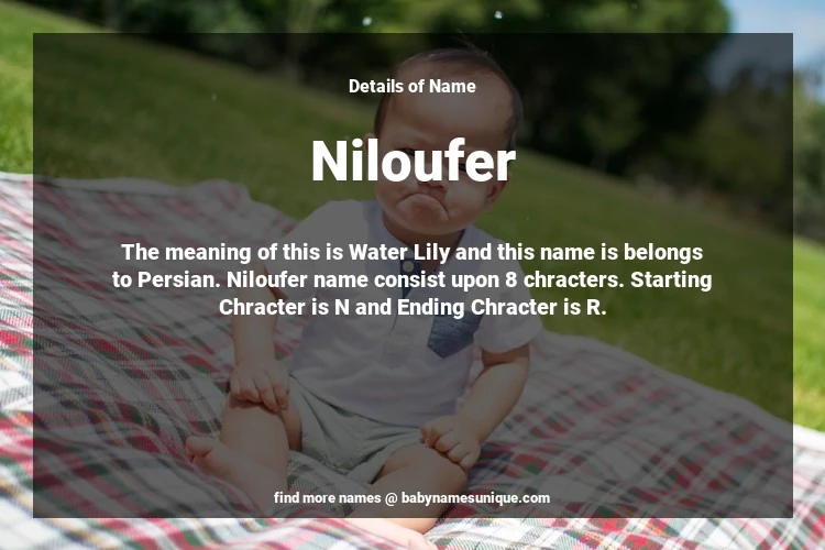The name Niloufer is chosen by those who are willing to find Unique Transgenders Baby Names. The meaning of this is Water Lily and this name is belongs to Persian Origin. Baby Name Niloufer consist upon 8 chracters. Starting alphabet is N and ending alphabet is R. This name is used primarily by parents who are considering unique baby names for Transgenders. The Zodiac Sign suitbale for this name are;