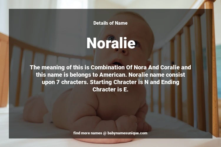 The name Noralie is chosen by those who are willing to find Unique Transgenders Baby Names. The meaning of this is Combination Of Nora And Coralie and this name is belongs to American Origin. Baby Name Noralie consist upon 7 chracters. Starting alphabet is N and ending alphabet is E. This name is used primarily by parents who are considering unique baby names for Transgenders. The Zodiac Sign suitbale for this name are;