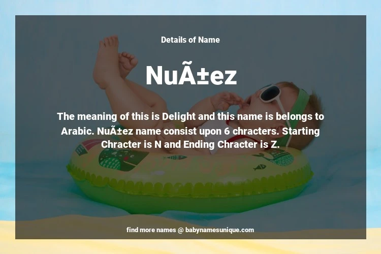 The name Nuñez is chosen by those who are willing to find Unique Transgenders Baby Names. The meaning of this is Delight and this name is belongs to Arabic Origin. Baby Name Nuñez consist upon 6 chracters. Starting alphabet is N and ending alphabet is Z. This name is used primarily by parents who are considering unique baby names for Transgenders. The Zodiac Sign suitbale for this name are;