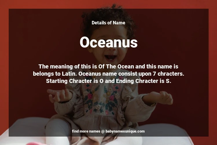 The name Oceanus is chosen by those who are willing to find Unique Boy Baby Names. The meaning of this is Of The Ocean and this name is belongs to Latin Origin. Baby Name Oceanus consist upon 7 chracters. Starting alphabet is O and ending alphabet is S. This name is used primarily by parents who are considering unique baby names for Boy. The Zodiac Sign suitbale for this name are;