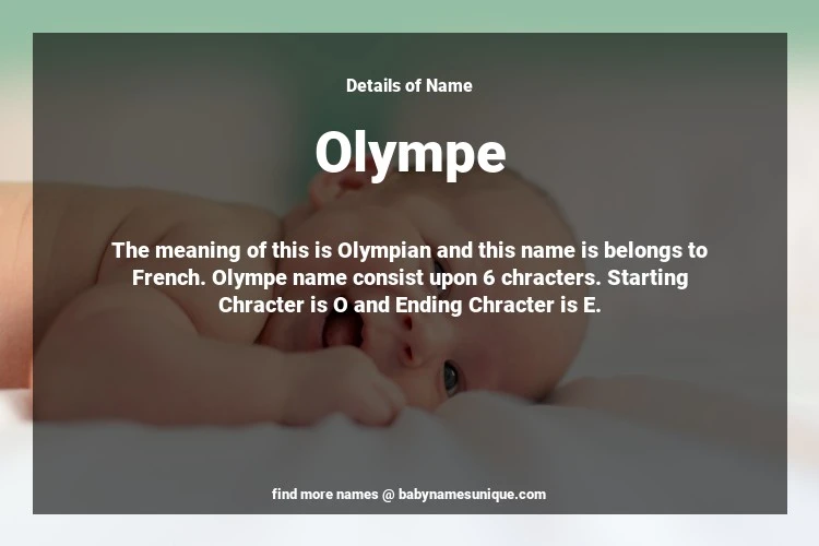 The name Olympe is chosen by those who are willing to find Unique Transgenders Baby Names. The meaning of this is Olympian and this name is belongs to French Origin. Baby Name Olympe consist upon 6 chracters. Starting alphabet is O and ending alphabet is E. This name is used primarily by parents who are considering unique baby names for Transgenders. The Zodiac Sign suitbale for this name are;