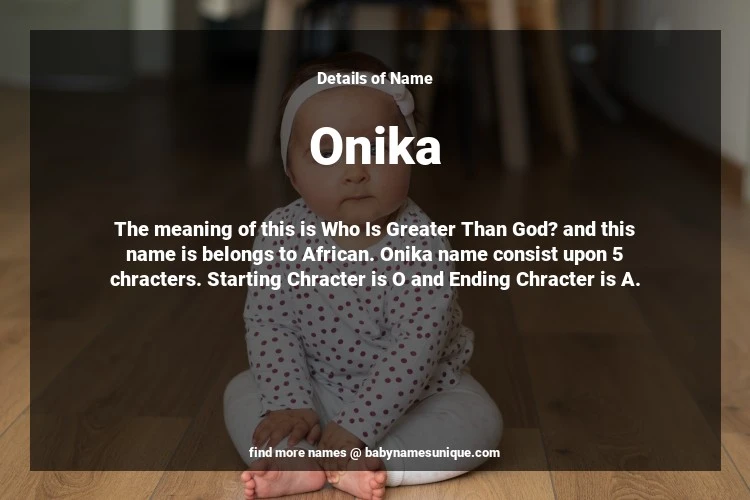 The name Onika is chosen by those who are willing to find Unique Transgenders Baby Names. The meaning of this is Who Is Greater Than God? and this name is belongs to African Origin. Baby Name Onika consist upon 5 chracters. Starting alphabet is O and ending alphabet is A. This name is used primarily by parents who are considering unique baby names for Transgenders. The Zodiac Sign suitbale for this name are;