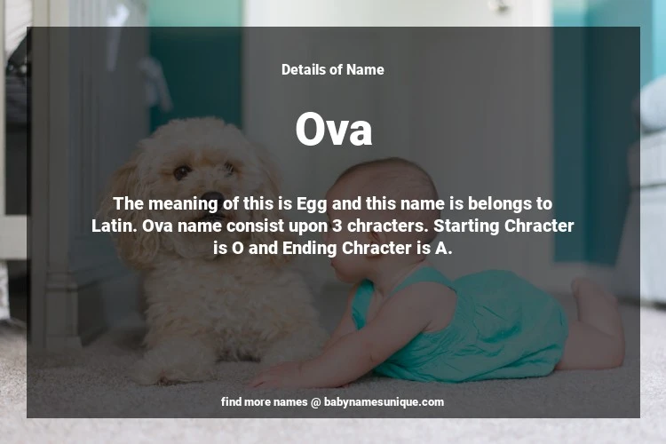 The name Ova is chosen by those who are willing to find Unique Transgenders Baby Names. The meaning of this is Egg and this name is belongs to Latin Origin. Baby Name Ova consist upon 3 chracters. Starting alphabet is O and ending alphabet is A. This name is used primarily by parents who are considering unique baby names for Transgenders. The Zodiac Sign suitbale for this name are;