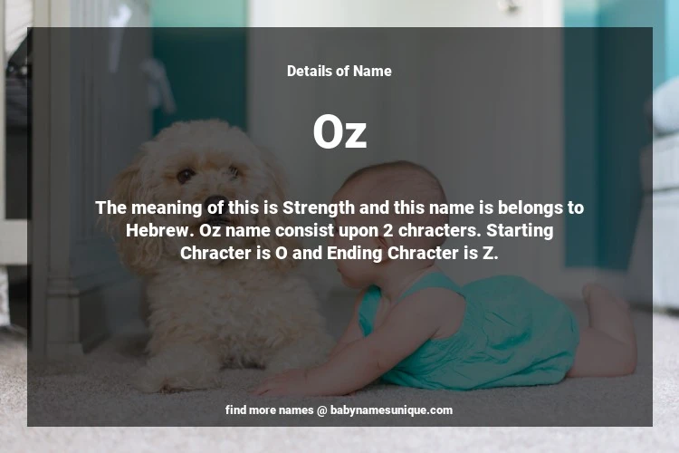 The name Oz is chosen by those who are willing to find Unique Transgenders Baby Names. The meaning of this is Strength and this name is belongs to Hebrew Origin. Baby Name Oz consist upon 2 chracters. Starting alphabet is O and ending alphabet is Z. This name is used primarily by parents who are considering unique baby names for Transgenders. The Zodiac Sign suitbale for this name are;