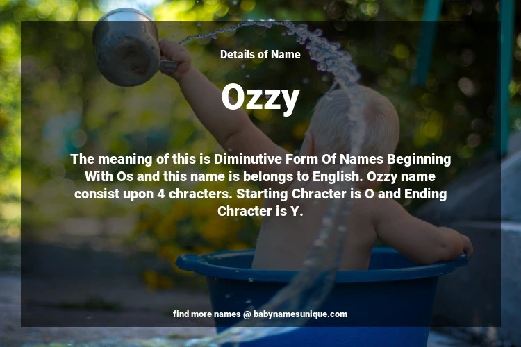 The name Ozzy is chosen by those who are willing to find Unique Boy Baby Names. The meaning of this is Diminutive Form Of Names Beginning With Os and this name is belongs to English Origin. Baby Name Ozzy consist upon 4 chracters. Starting alphabet is O and ending alphabet is Y. This name is used primarily by parents who are considering unique baby names for Boy. The Zodiac Sign suitbale for this name are;