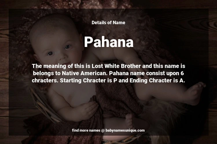 The name Pahana is chosen by those who are willing to find Unique Transgenders Baby Names. The meaning of this is Lost White Brother and this name is belongs to Native American Origin. Baby Name Pahana consist upon 6 chracters. Starting alphabet is P and ending alphabet is A. This name is used primarily by parents who are considering unique baby names for Transgenders. The Zodiac Sign suitbale for this name are;
