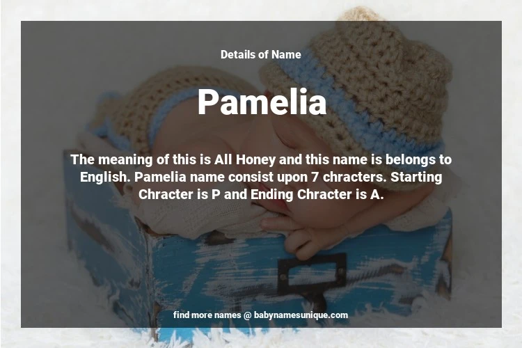 The name Pamelia is chosen by those who are willing to find Unique Transgenders Baby Names. The meaning of this is All Honey and this name is belongs to English Origin. Baby Name Pamelia consist upon 7 chracters. Starting alphabet is P and ending alphabet is A. This name is used primarily by parents who are considering unique baby names for Transgenders. The Zodiac Sign suitbale for this name are;