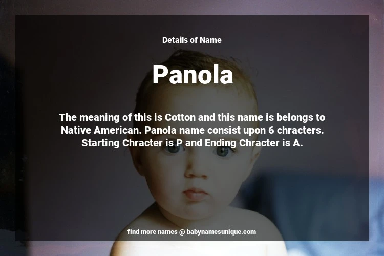 The name Panola is chosen by those who are willing to find Unique Transgenders Baby Names. The meaning of this is Cotton and this name is belongs to Native American Origin. Baby Name Panola consist upon 6 chracters. Starting alphabet is P and ending alphabet is A. This name is used primarily by parents who are considering unique baby names for Transgenders. The Zodiac Sign suitbale for this name are;