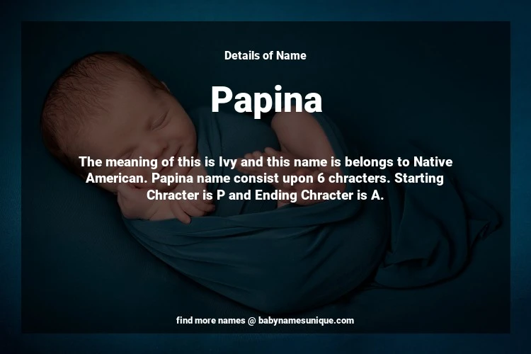 The name Papina is chosen by those who are willing to find Unique Transgenders Baby Names. The meaning of this is Ivy and this name is belongs to Native American Origin. Baby Name Papina consist upon 6 chracters. Starting alphabet is P and ending alphabet is A. This name is used primarily by parents who are considering unique baby names for Transgenders. The Zodiac Sign suitbale for this name are;
