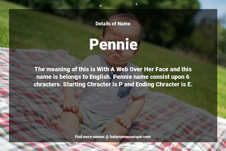 The name Pennie is chosen by those who are willing to find Unique Transgenders Baby Names. The meaning of this is With A Web Over Her Face and this name is belongs to English Origin. Baby Name Pennie consist upon 6 chracters. Starting alphabet is P and ending alphabet is E. This name is used primarily by parents who are considering unique baby names for Transgenders. The Zodiac Sign suitbale for this name are;