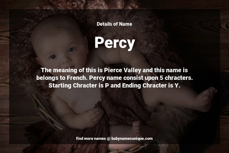 The name Percy is chosen by those who are willing to find Unique Boy Baby Names. The meaning of this is Pierce Valley and this name is belongs to French Origin. Baby Name Percy consist upon 5 chracters. Starting alphabet is P and ending alphabet is Y. This name is used primarily by parents who are considering unique baby names for Boy. The Zodiac Sign suitbale for this name are;
