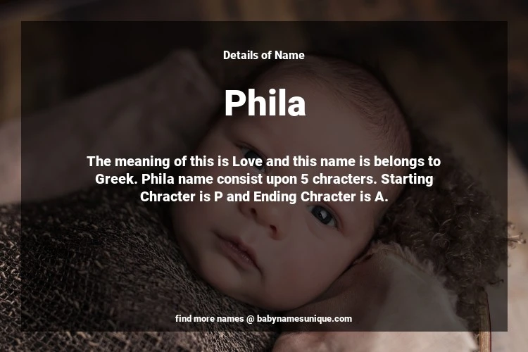 The name Phila is chosen by those who are willing to find Unique Transgenders Baby Names. The meaning of this is Love and this name is belongs to Greek Origin. Baby Name Phila consist upon 5 chracters. Starting alphabet is P and ending alphabet is A. This name is used primarily by parents who are considering unique baby names for Transgenders. The Zodiac Sign suitbale for this name are;
