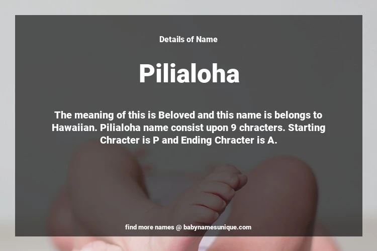 The name Pilialoha is chosen by those who are willing to find Unique Transgenders Baby Names. The meaning of this is Beloved and this name is belongs to Hawaiian Origin. Baby Name Pilialoha consist upon 9 chracters. Starting alphabet is P and ending alphabet is A. This name is used primarily by parents who are considering unique baby names for Transgenders. The Zodiac Sign suitbale for this name are;