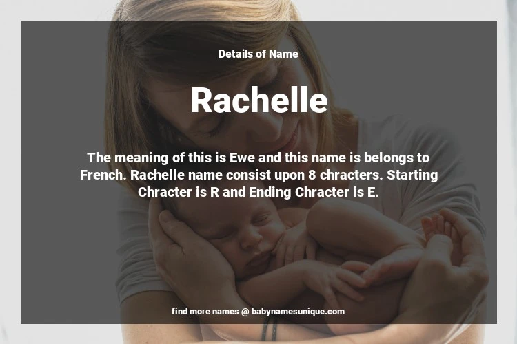 The name Rachelle is chosen by those who are willing to find Unique Transgenders Baby Names. The meaning of this is Ewe and this name is belongs to French Origin. Baby Name Rachelle consist upon 8 chracters. Starting alphabet is R and ending alphabet is E. This name is used primarily by parents who are considering unique baby names for Transgenders. The Zodiac Sign suitbale for this name are;