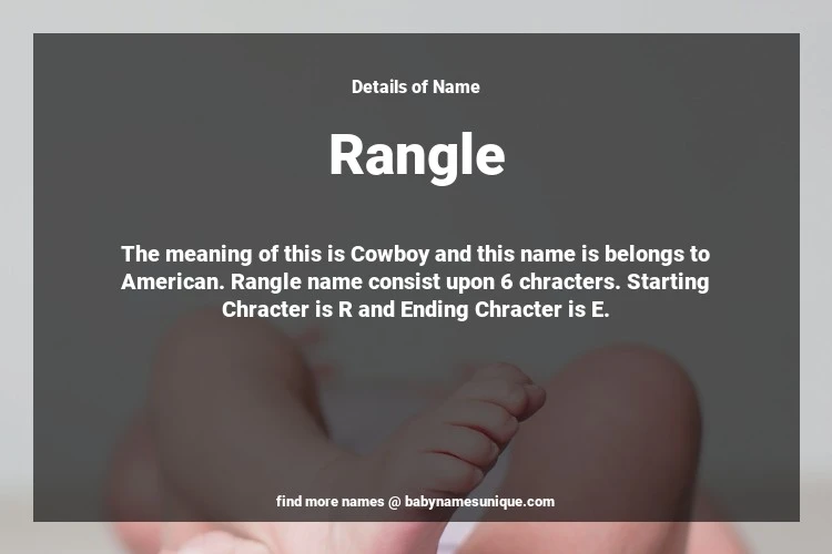 The name Rangle is chosen by those who are willing to find Unique Boy Baby Names. The meaning of this is Cowboy and this name is belongs to American Origin. Baby Name Rangle consist upon 6 chracters. Starting alphabet is R and ending alphabet is E. This name is used primarily by parents who are considering unique baby names for Boy. The Zodiac Sign suitbale for this name are;
