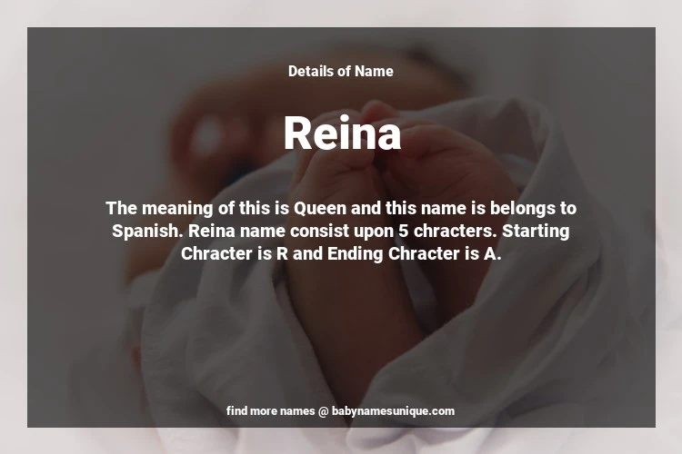 The name Reina is chosen by those who are willing to find Unique Transgenders Baby Names. The meaning of this is Queen and this name is belongs to Spanish Origin. Baby Name Reina consist upon 5 chracters. Starting alphabet is R and ending alphabet is A. This name is used primarily by parents who are considering unique baby names for Transgenders. The Zodiac Sign suitbale for this name are;
