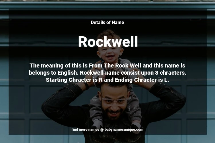 The name Rockwell is chosen by those who are willing to find Unique Boy Baby Names. The meaning of this is From The Rook Well and this name is belongs to English Origin. Baby Name Rockwell consist upon 8 chracters. Starting alphabet is R and ending alphabet is L. This name is used primarily by parents who are considering unique baby names for Boy. The Zodiac Sign suitbale for this name are;