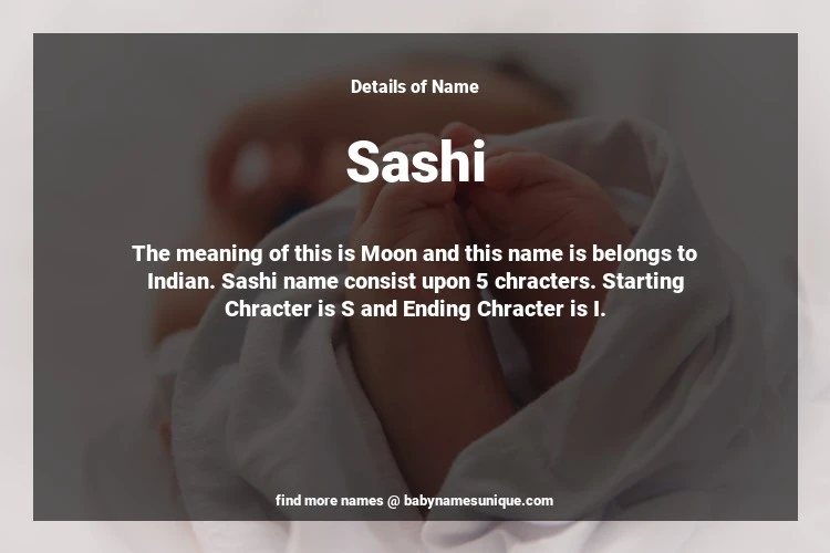 The name Sashi is chosen by those who are willing to find Unique Transgenders Baby Names. The meaning of this is Moon and this name is belongs to Indian Origin. Baby Name Sashi consist upon 5 chracters. Starting alphabet is S and ending alphabet is I. This name is used primarily by parents who are considering unique baby names for Transgenders. The Zodiac Sign suitbale for this name are;