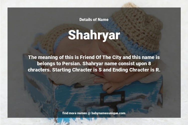 The name Shahryar is chosen by those who are willing to find Unique Boy Baby Names. The meaning of this is Friend Of The City and this name is belongs to Persian Origin. Baby Name Shahryar consist upon 8 chracters. Starting alphabet is S and ending alphabet is R. This name is used primarily by parents who are considering unique baby names for Boy. The Zodiac Sign suitbale for this name are;