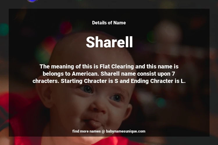 The name Sharell is chosen by those who are willing to find Unique Transgenders Baby Names. The meaning of this is Flat Clearing and this name is belongs to American Origin. Baby Name Sharell consist upon 7 chracters. Starting alphabet is S and ending alphabet is L. This name is used primarily by parents who are considering unique baby names for Transgenders. The Zodiac Sign suitbale for this name are;