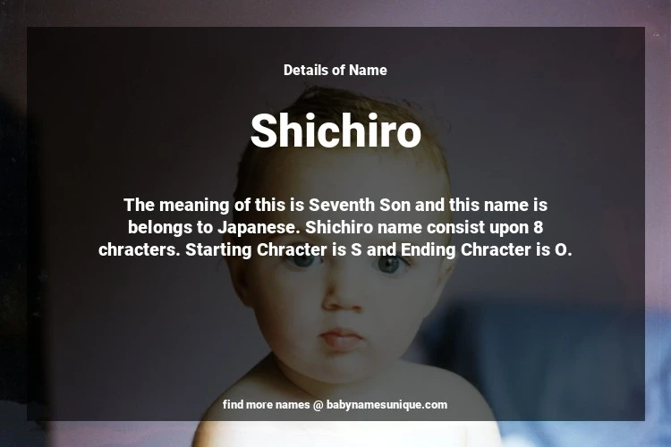 The name Shichiro is chosen by those who are willing to find Unique Boy Baby Names. The meaning of this is Seventh Son and this name is belongs to Japanese Origin. Baby Name Shichiro consist upon 8 chracters. Starting alphabet is S and ending alphabet is O. This name is used primarily by parents who are considering unique baby names for Boy. The Zodiac Sign suitbale for this name are;
