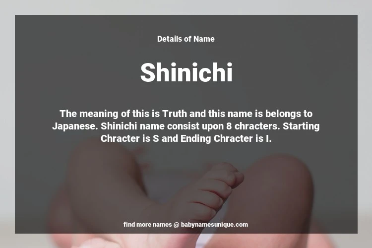 The name Shinichi is chosen by those who are willing to find Unique Boy Baby Names. The meaning of this is Truth and this name is belongs to Japanese Origin. Baby Name Shinichi consist upon 8 chracters. Starting alphabet is S and ending alphabet is I. This name is used primarily by parents who are considering unique baby names for Boy. The Zodiac Sign suitbale for this name are;