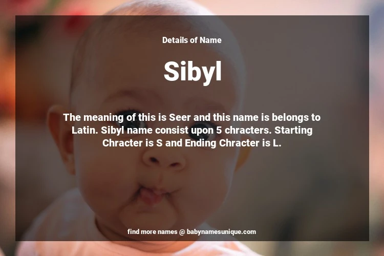 The name Sibyl is chosen by those who are willing to find Unique Transgenders Baby Names. The meaning of this is Seer and this name is belongs to Latin Origin. Baby Name Sibyl consist upon 5 chracters. Starting alphabet is S and ending alphabet is L. This name is used primarily by parents who are considering unique baby names for Transgenders. The Zodiac Sign suitbale for this name are;