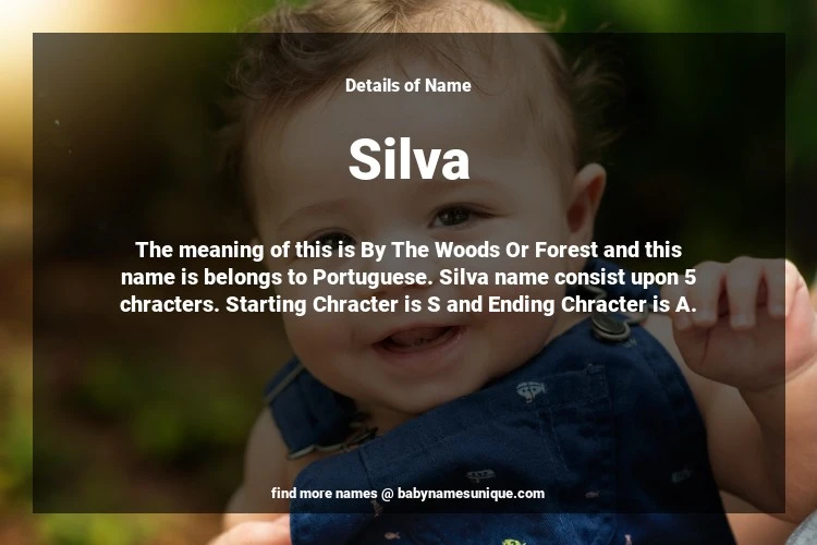 The name Silva is chosen by those who are willing to find Unique Transgenders Baby Names. The meaning of this is By The Woods Or Forest and this name is belongs to Portuguese Origin. Baby Name Silva consist upon 5 chracters. Starting alphabet is S and ending alphabet is A. This name is used primarily by parents who are considering unique baby names for Transgenders. The Zodiac Sign suitbale for this name are;