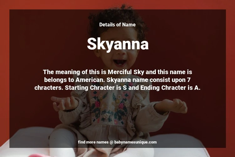 The name Skyanna is chosen by those who are willing to find Unique Transgenders Baby Names. The meaning of this is Merciful Sky and this name is belongs to American Origin. Baby Name Skyanna consist upon 7 chracters. Starting alphabet is S and ending alphabet is A. This name is used primarily by parents who are considering unique baby names for Transgenders. The Zodiac Sign suitbale for this name are;