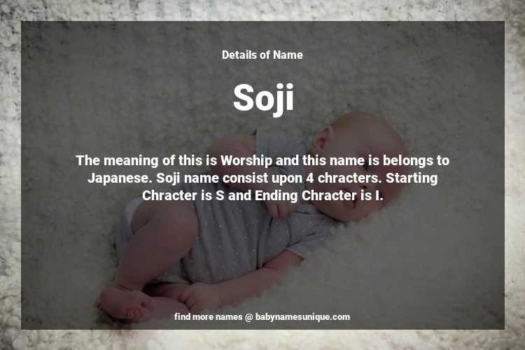 The name Soji is chosen by those who are willing to find Unique Boy Baby Names. The meaning of this is Worship and this name is belongs to Japanese Origin. Baby Name Soji consist upon 4 chracters. Starting alphabet is S and ending alphabet is I. This name is used primarily by parents who are considering unique baby names for Boy. The Zodiac Sign suitbale for this name are;