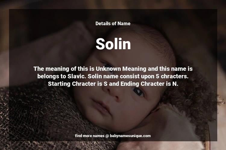 The name Solin is chosen by those who are willing to find Unique Transgenders Baby Names. The meaning of this is Unknown Meaning and this name is belongs to Slavic Origin. Baby Name Solin consist upon 5 chracters. Starting alphabet is S and ending alphabet is N. This name is used primarily by parents who are considering unique baby names for Transgenders. The Zodiac Sign suitbale for this name are;