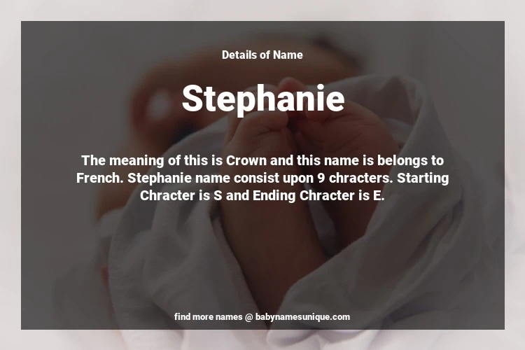The name Stephanie is chosen by those who are willing to find Unique Transgenders Baby Names. The meaning of this is Crown and this name is belongs to French Origin. Baby Name Stephanie consist upon 9 chracters. Starting alphabet is S and ending alphabet is E. This name is used primarily by parents who are considering unique baby names for Transgenders. The Zodiac Sign suitbale for this name are;