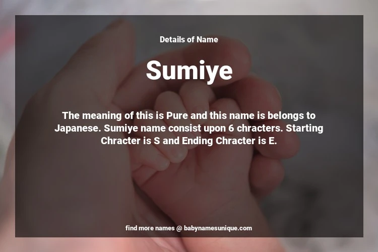 The name Sumiye is chosen by those who are willing to find Unique Transgenders Baby Names. The meaning of this is Pure and this name is belongs to Japanese Origin. Baby Name Sumiye consist upon 6 chracters. Starting alphabet is S and ending alphabet is E. This name is used primarily by parents who are considering unique baby names for Transgenders. The Zodiac Sign suitbale for this name are;