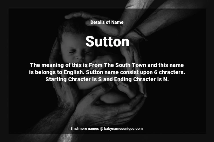 The name Sutton is chosen by those who are willing to find Unique Transgenders Baby Names. The meaning of this is From The South Town and this name is belongs to English Origin. Baby Name Sutton consist upon 6 chracters. Starting alphabet is S and ending alphabet is N. This name is used primarily by parents who are considering unique baby names for Transgenders. The Zodiac Sign suitbale for this name are;