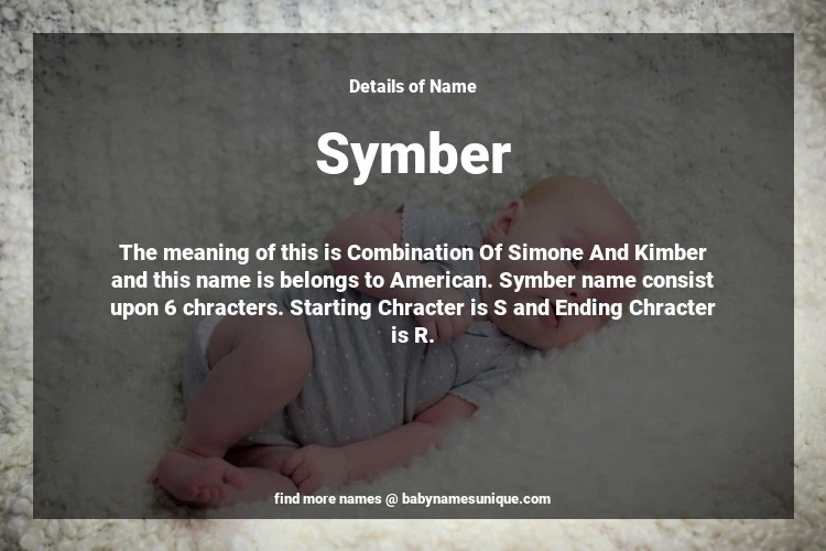 The name Symber is chosen by those who are willing to find Unique Transgenders Baby Names. The meaning of this is Combination Of Simone And Kimber and this name is belongs to American Origin. Baby Name Symber consist upon 6 chracters. Starting alphabet is S and ending alphabet is R. This name is used primarily by parents who are considering unique baby names for Transgenders. The Zodiac Sign suitbale for this name are;