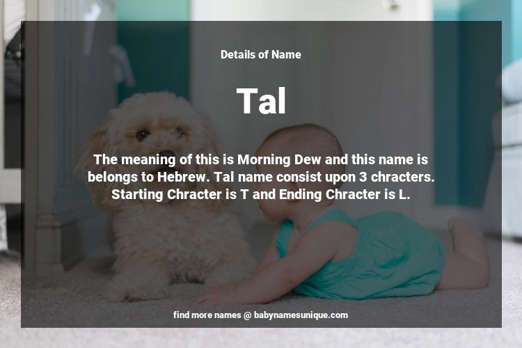 The name Tal is chosen by those who are willing to find Unique Transgenders Baby Names. The meaning of this is Morning Dew and this name is belongs to Hebrew Origin. Baby Name Tal consist upon 3 chracters. Starting alphabet is T and ending alphabet is L. This name is used primarily by parents who are considering unique baby names for Transgenders. The Zodiac Sign suitbale for this name are;