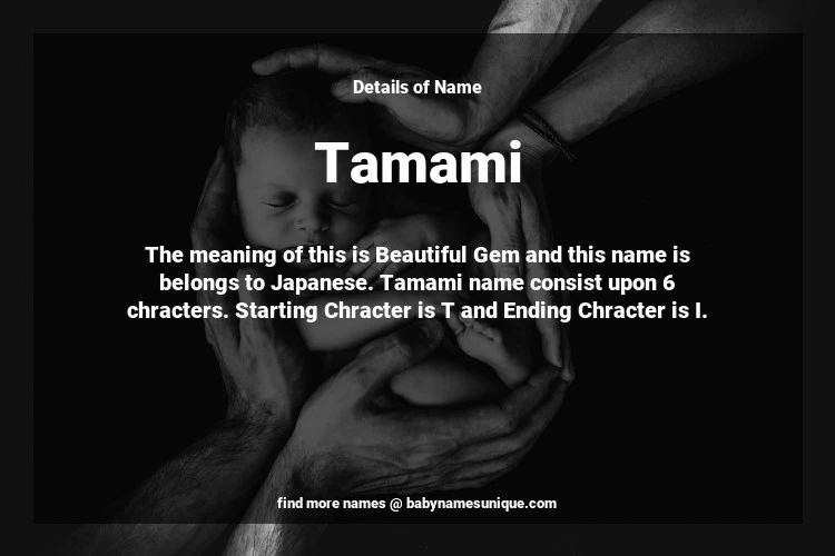 The name Tamami is chosen by those who are willing to find Unique Transgenders Baby Names. The meaning of this is Beautiful Gem and this name is belongs to Japanese Origin. Baby Name Tamami consist upon 6 chracters. Starting alphabet is T and ending alphabet is I. This name is used primarily by parents who are considering unique baby names for Transgenders. The Zodiac Sign suitbale for this name are;